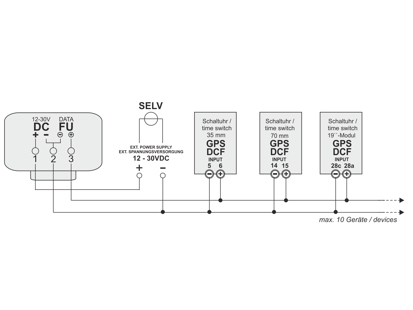 - Für ca. 20 Nebenuhren (24 V DC, 150 mA, Polwechsel)